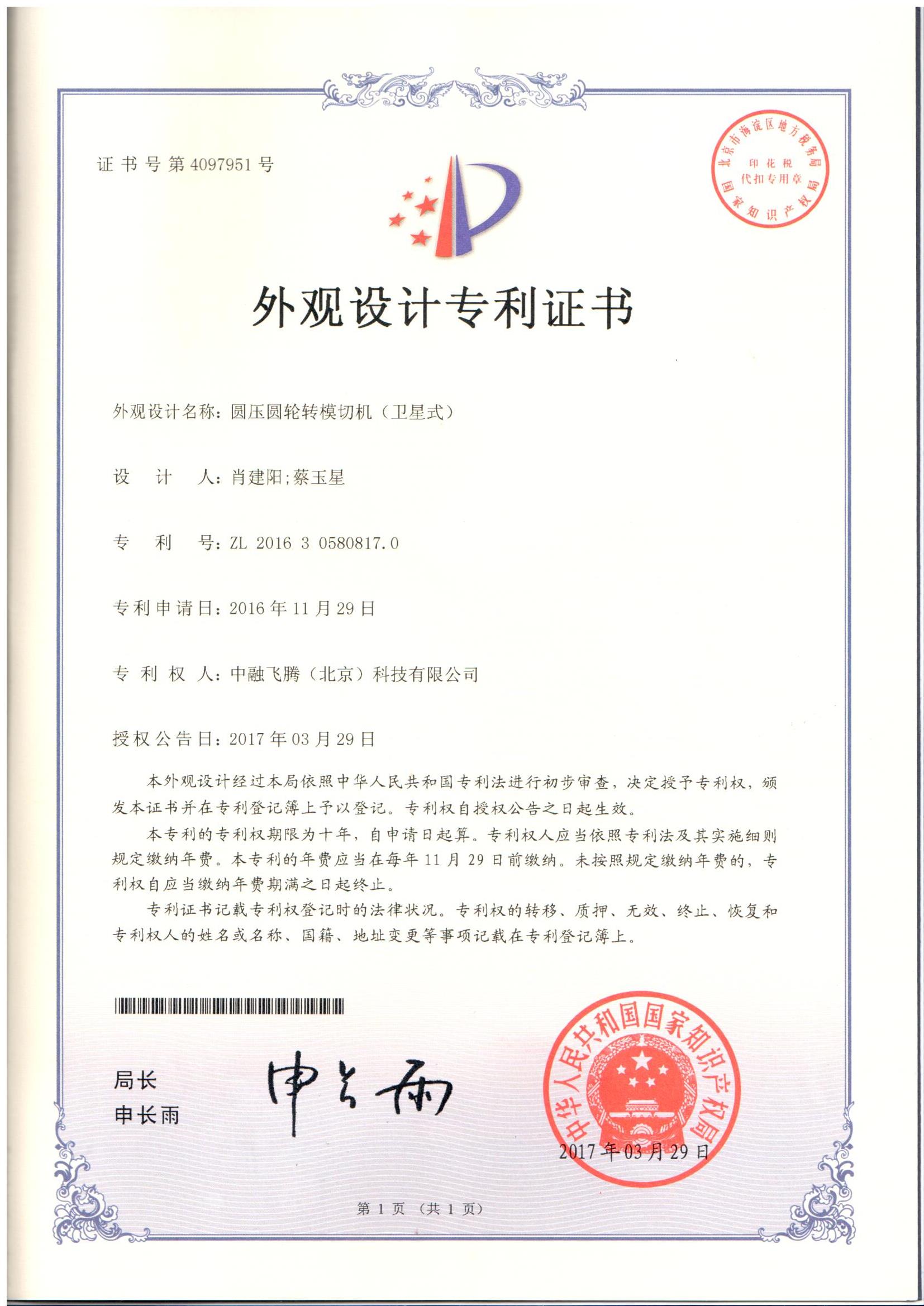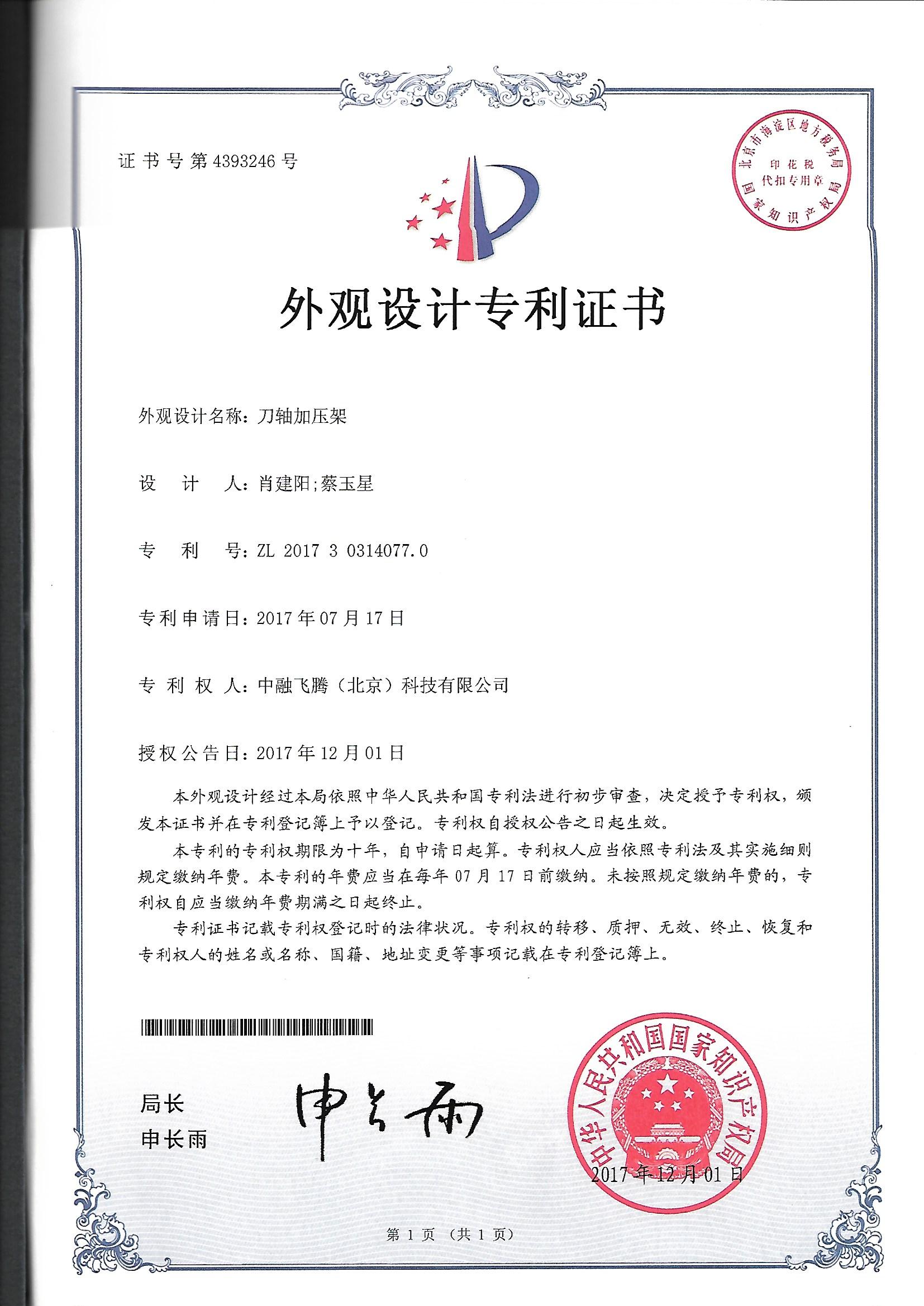 外觀設計專利證書