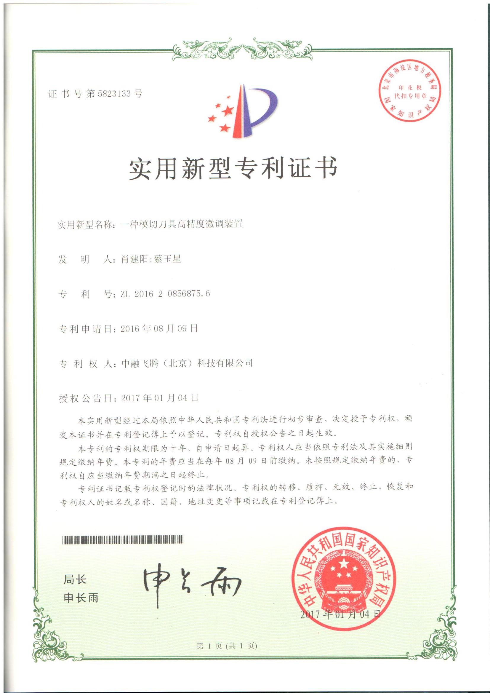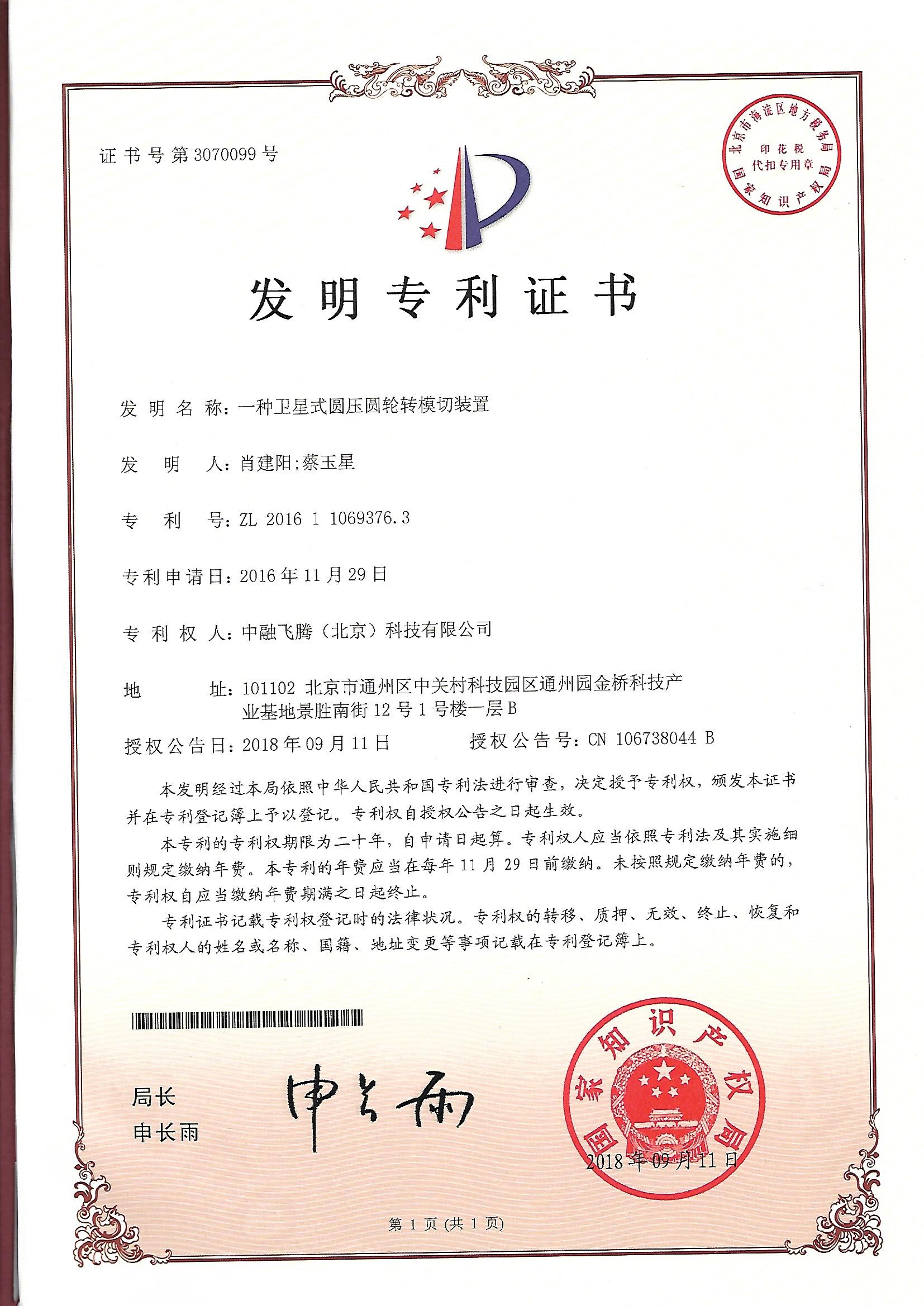 發(fā)明專利證書