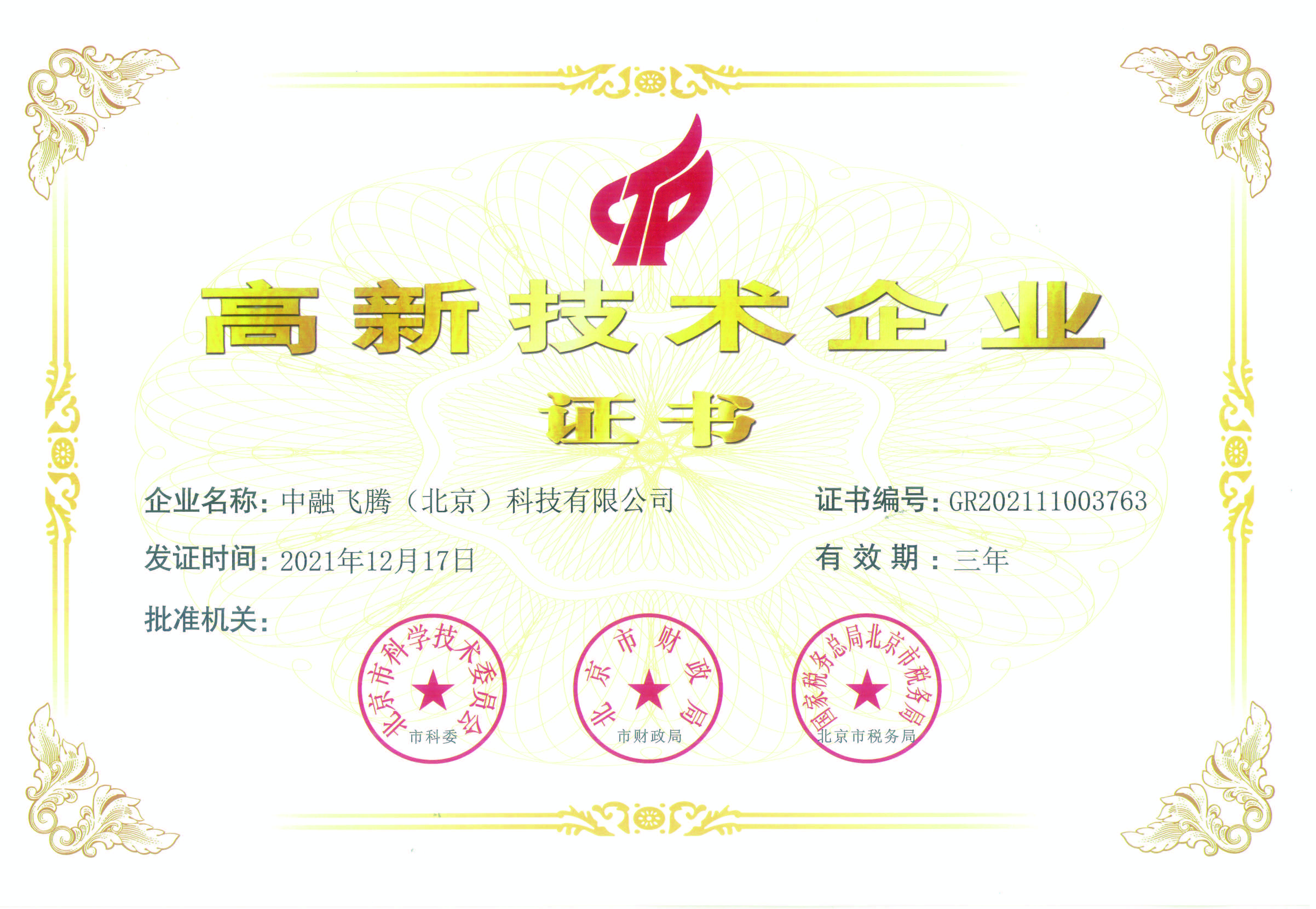高新技術企業(yè)證書